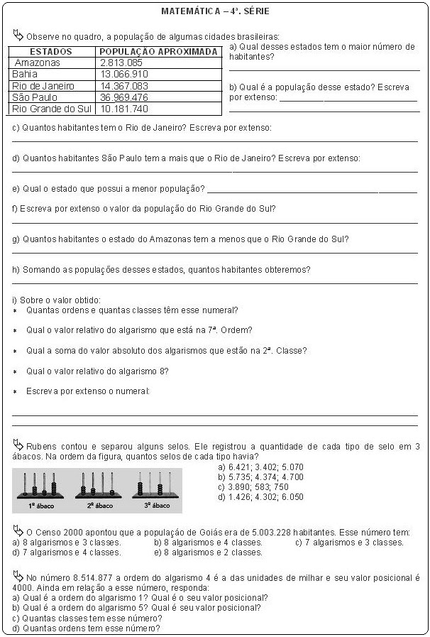 Matemática 3° e 4° Ano